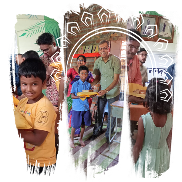 অন্য পুজো- On 22 September 2024, just before the auspicious occasion of Sri Sri Durga Puja, we 'Anandam', along with the help of 'Vivekananda Sasthya Seva Sangha' has provided 207 children from Khanpur, Narayanpur and Harangheri, with new garments.